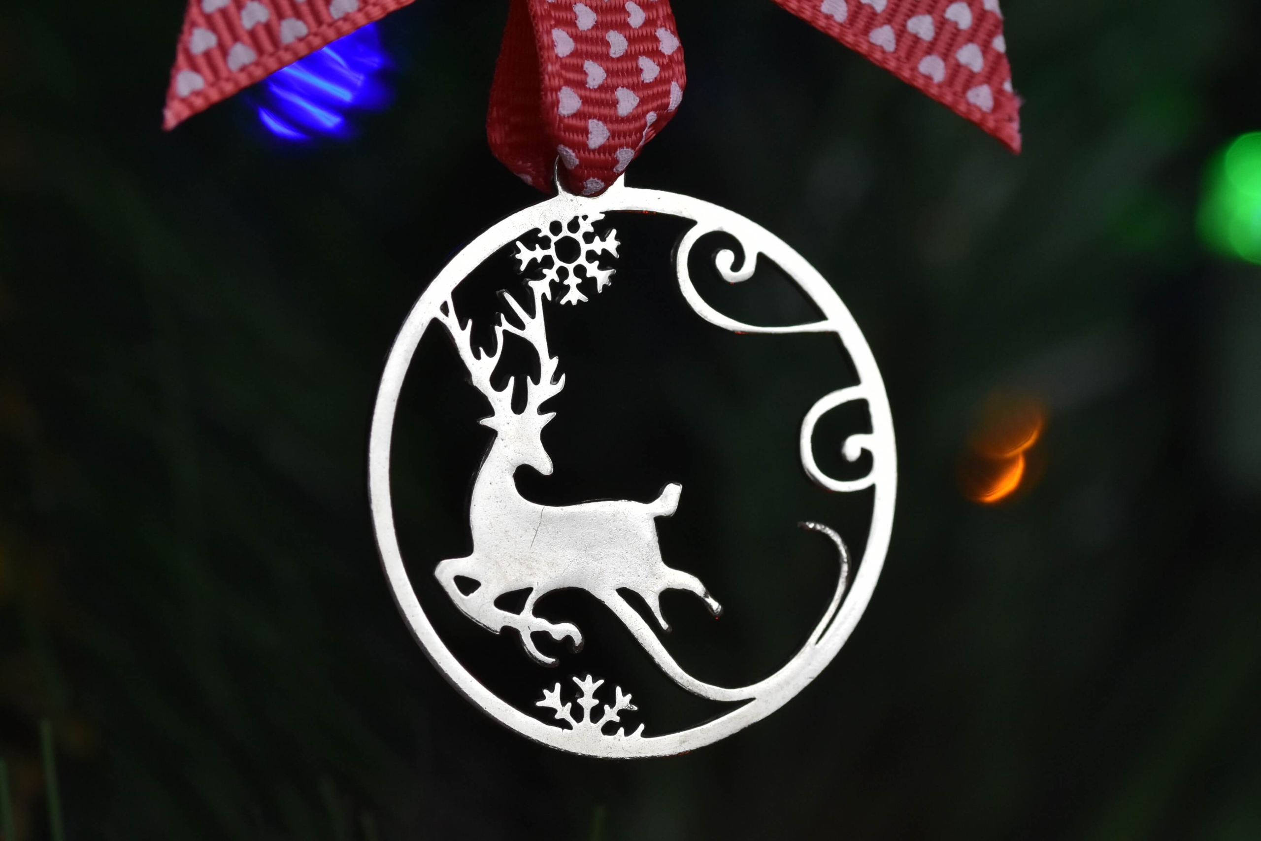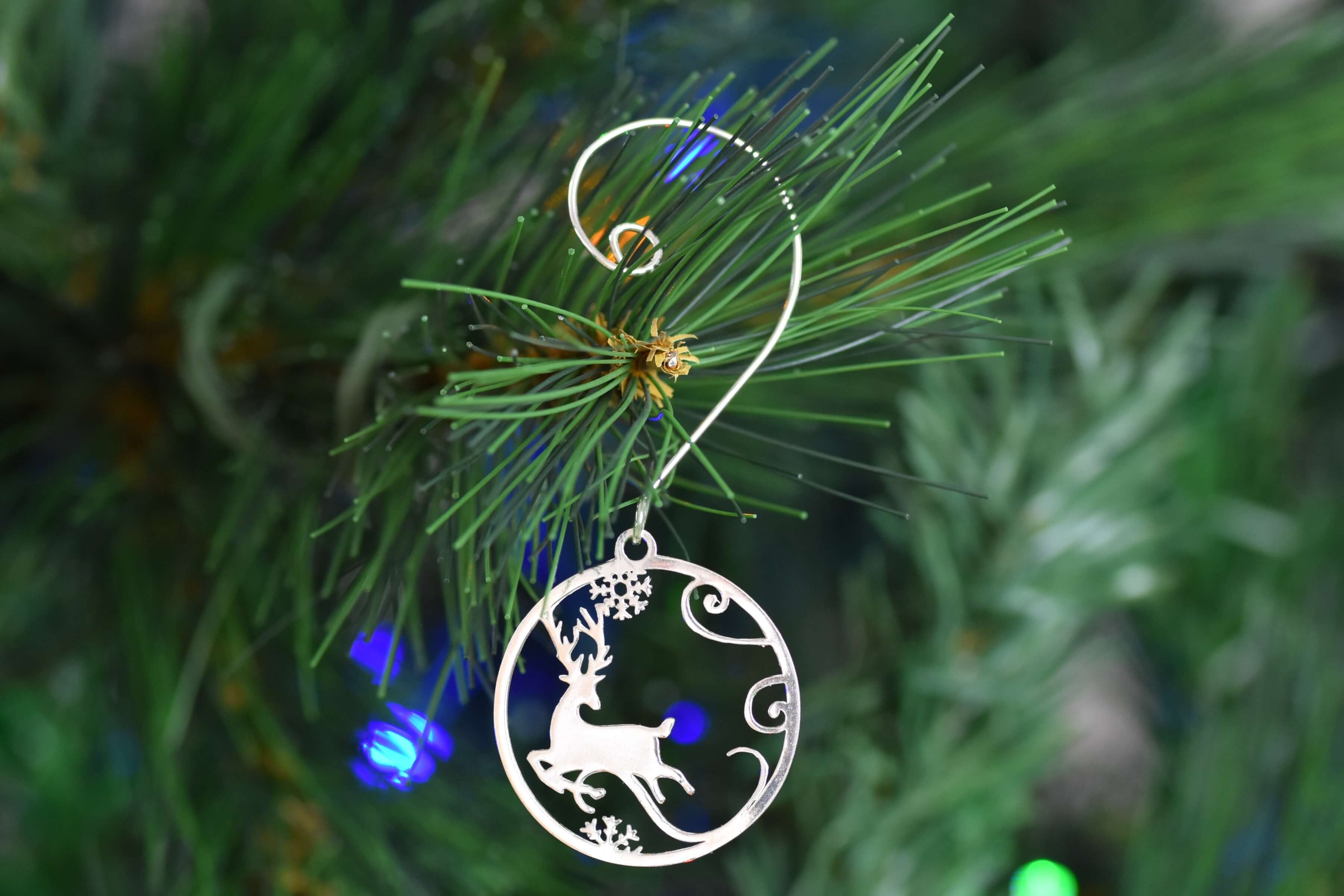 Ръчно изработена коледна висулка от масивно сребро проба 925 с нежен дизайн на еленче сред падащи снежинки. Идеалният луксозен акцент за вашата елха, който ще се превърне в семейна реликва!